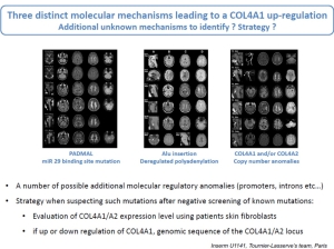 Professor Tournier-Lasserve focused on hereditary causes of small vessel disease. Causative mutations are only identified in 20-25% of the referred patients. Perturbation of the cerebrovascular matrisome is a convergent pathway but through different mechanisms. She nicely demonstrated with the COL4A1 example (HANAC and PADMAL phenotypes), how mutational consequences can be distinct from one class of mutations to another and lead to different small vessel disease (SVD) phenotypes. Many other anomalies can cause an up or down regulation of COL4A1/2 genes and might explain some unresolved SVD cases in the future. Probably a combination of DNA sequencing and functional protein/mRNA fibroblast analysis will be needed to identify them.