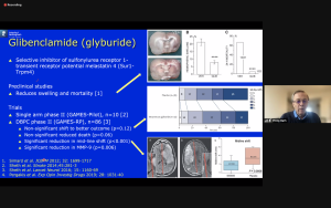 Third, prof. Philip Bath gave an overview talk on treatment of brain edema. The only currently proven treatment is decompressive surgery, but there may be pharmacological alternatives such as glibenclamide. There’s also the ethics to consider, though: what to think of the chance to shift patients from mRS 6 to 4 or 5?
