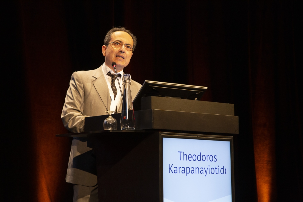 Theodoros Karapanayiotides from Greece opened the session of collaborative Symposium the ESO and the European Society of Cardiology. He started his talk with an introduction of “POCUS” – point of care ultrasound, a portable device, which does not make neurologists depend on the radiology department in the cases when an immediate ultrasound diagnosis is necessary. With a POCUS a patient may be scanned while in an ambulance on the way to an emergency room or even in remote areas. The advantage of the POCUS is its availability in neurological departments. POCUS is not a full cardiac examination, a semi qualitative, but permits to estimate the left/right ventricle size in the parasternal long axis. Common pathologies, which might be diagnosed with a POCUS are